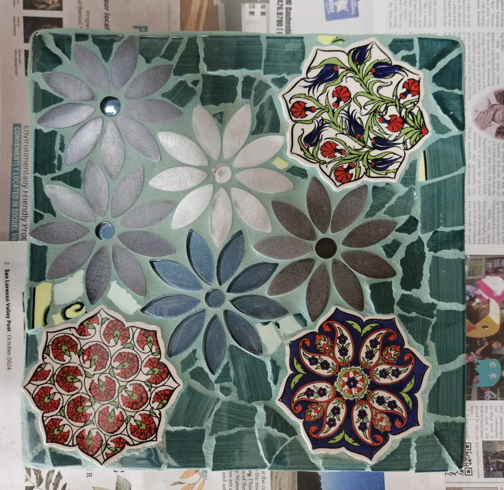 Here are my latest mosaics! I made the blue one for my sister’s Xmas present. I hope she likes it! And I guess you can tell I’m having loads of fun making mosaics!